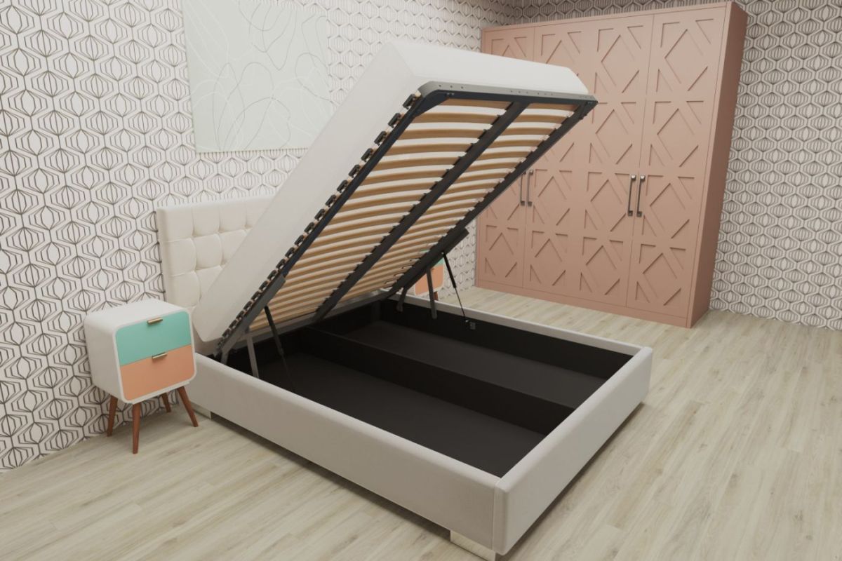 *Кровать с подъемным механизмом идет с центральной продольной траверсой (дополнительно усиливает ортопедическое основание), бельевое дно кровати состоит из 6 ящиков на липучках. Которые выдерживают достаточное наполнение (в пределах разумного ). Плюс липучек в том, что они фиксируют ящики в кровати образуя единный монолит и благодаря этому кровать не будет двигаться из стороны в сторону.