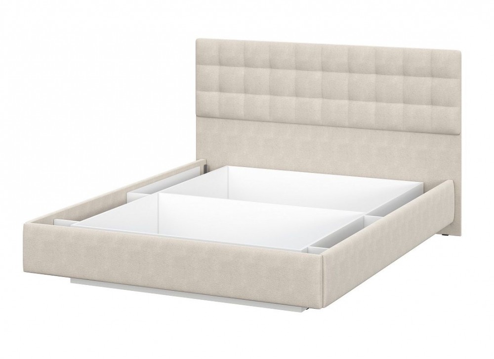 Кровать двойная №2 (универсальная 1.6х2.0) Серия 2 + основание с ПМ (Белый/Бежевый ткань/Квадро Бежевый ткань)