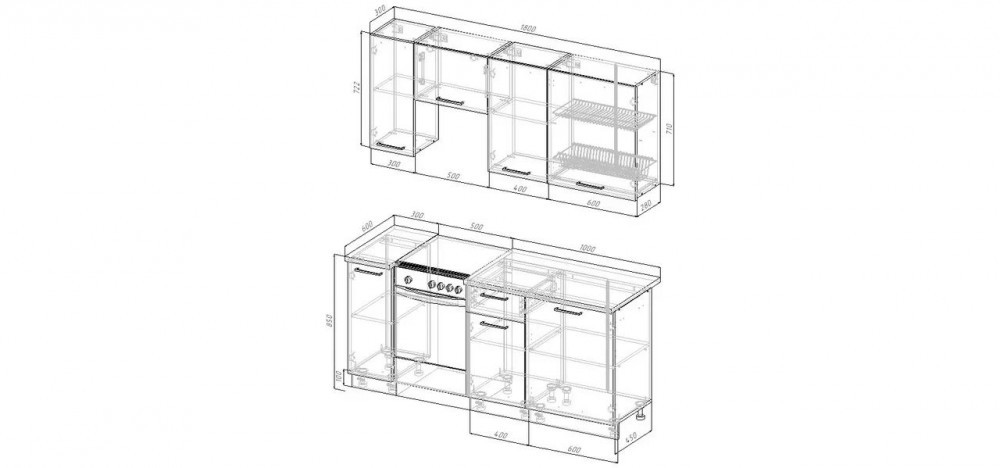 Фасады верхних модулей со свесом 12 мм дают возможность использовать без установки ручек.